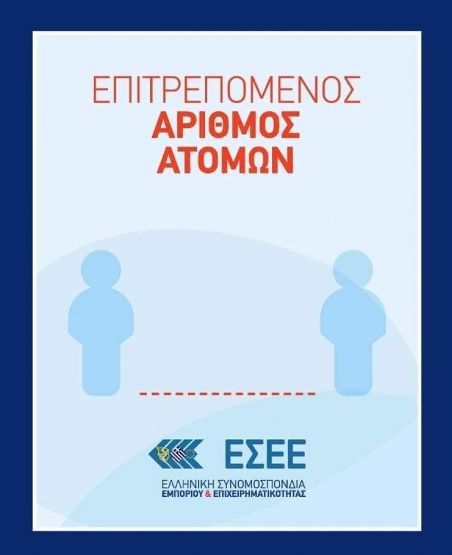 Γι' αυτό το λόγο σας επισυνάπτουμε το σχετικό δημιουργικό της ΕΣΕΕ, που μπορείτε να εκτυπώσετε και να αναρτήσετε, εφόσον κάνετε τους σχετικούς υπολογισμούς με τα νέα μέτρα.