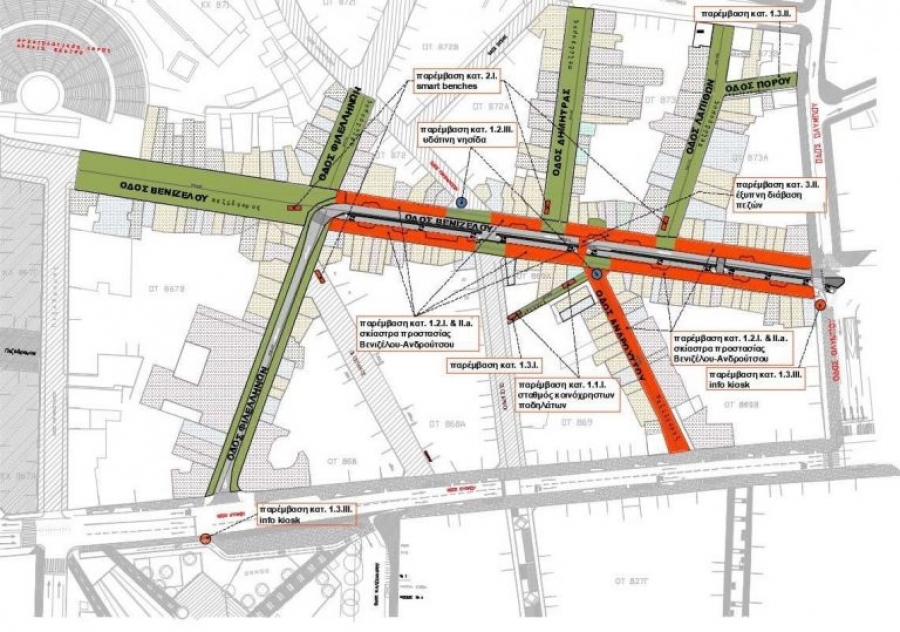Οι παρεμβάσεις που θα υλοποιήσει ο Εμπορικός Σύλλογος Λάρισας ως συνδικαιούχος περιλαμβάνουν τα ίδια τα καταστήματα και αφορούν στην αλλαγή ομοιόμορφων τεντόπανων, κάθετης επιγραφής με το λογότυπο του κάθε καταστήματος και τον αύξοντα αριθμό του, ανθοστήλες εκατέρωθεν του καταστήματος, ώστε να συμβάλουν στην ανάδειξη κοινής ταυτότητας της εμπορικής περιοχής ενώ παράλληλα θα συνοδεύονται από ενέργειες με ψηφιακά μέσα, για την προβολή και προώθηση της εμπορικής περιοχής παρέμβασης.