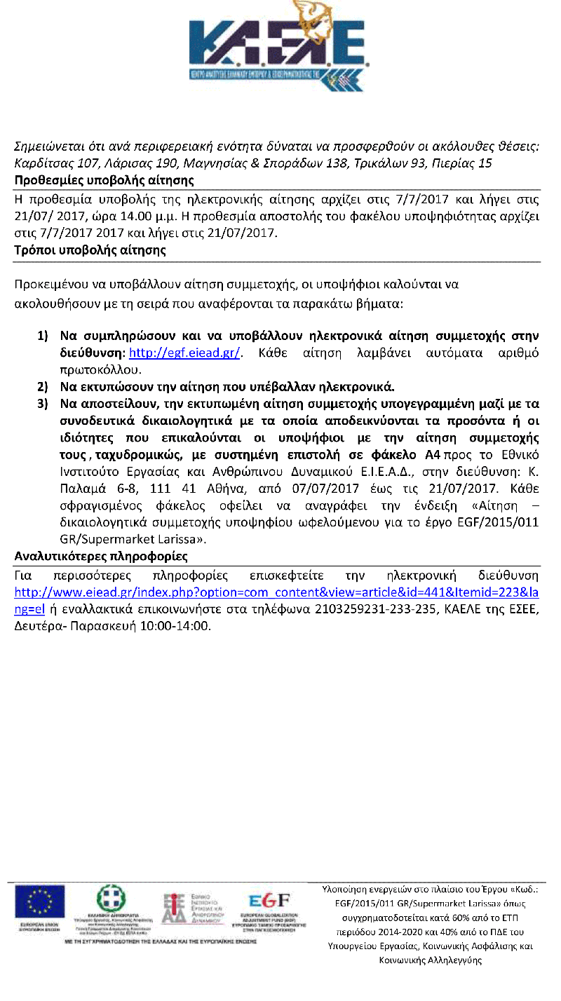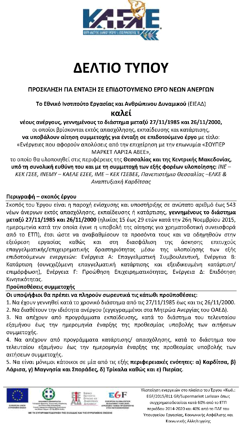 «Ενέργειες που αφορούν απολύσεις από την επιχείρηση με την επωνυμία «ΣΟΥΠΕΡ ΜΑΡΚΕΤ ΛΑΡΙΣΑ ΑΒΕΕ»,
